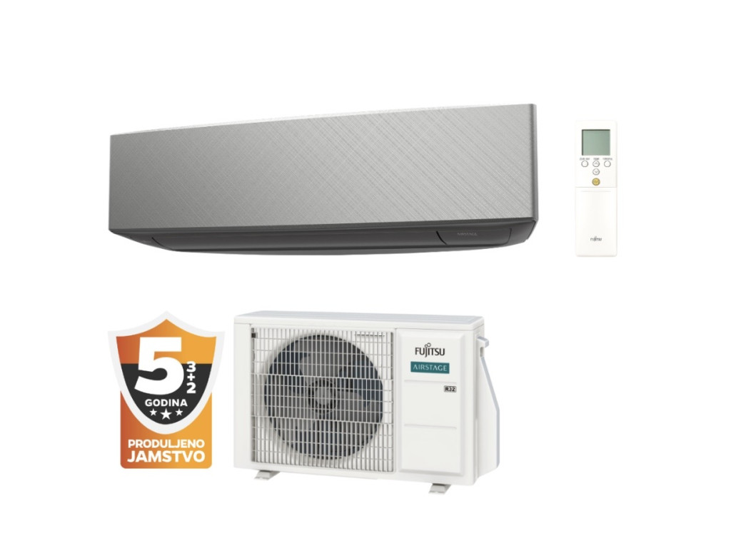Klima uređaj Fujitsu Design Inverter 4.2 kW sastoji se od unutarnje jedinice oznake ASEG14KETF-B, vanjske jedinice AOEG14KETA i infracrvenog daljinskog upravljača.