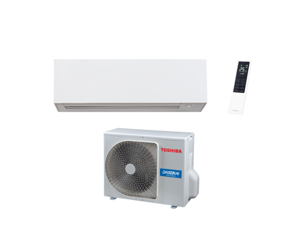 Klima uređaj Toshiba Daiseikai 10 2.5 kW sastoji se od unutarnje jedinice oznake RAS-B18S4KVPG-E, vanjske jedinice RAS-18S4AVPG-E i infracrvenog daljinskog upravljača.